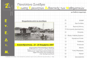 - Θεματική Ενότητα 5: Το άτομο, η κοινωνία, ο πολιτισμός: αλληλεπιδράσεις στο πλαίσιο της μαθηματικής εκπαίδευσης.
