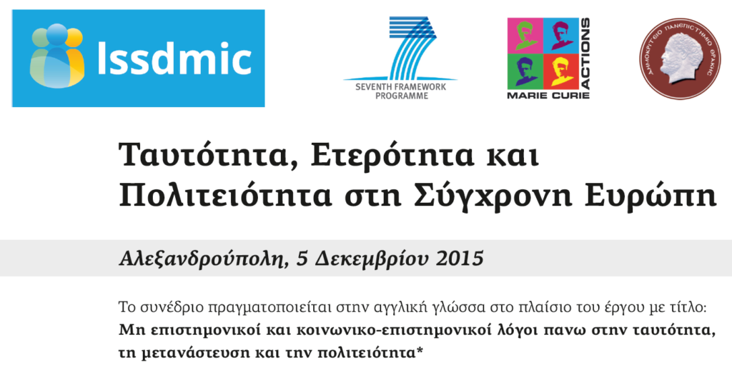 To συνέδριο πραγματοποιείται στο πλαίσιο του έργου «Μη επιστημονικοί και κοινωνικο-επιστημονικοί λόγοι πάνω στην ταυτότητα, τη μετανάστευση και την πολιτειότητα» με Επιστημονικό Υπεύθυνο τον Αντώνη Σαπουντζή, Επίκουρο Καθηγητή του Τ.Ε.Ε.Π.Η. Το έργο χρηματοδοτείται από το Έβδομο Πρόγραμμα Πλαίσιο της Ευρωπαϊκής Ένωσης, Δράση Υποστήριξης για Εκπαίδευση και Επαγγελματική Εξέλιξη Ερευνητών (MARIE CURIE), Προκήρυξη: FP7-PEOPLE-2011-CIG.